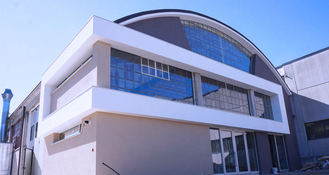 The project provides an open space with an industrial character, opening up the existing ceiling and